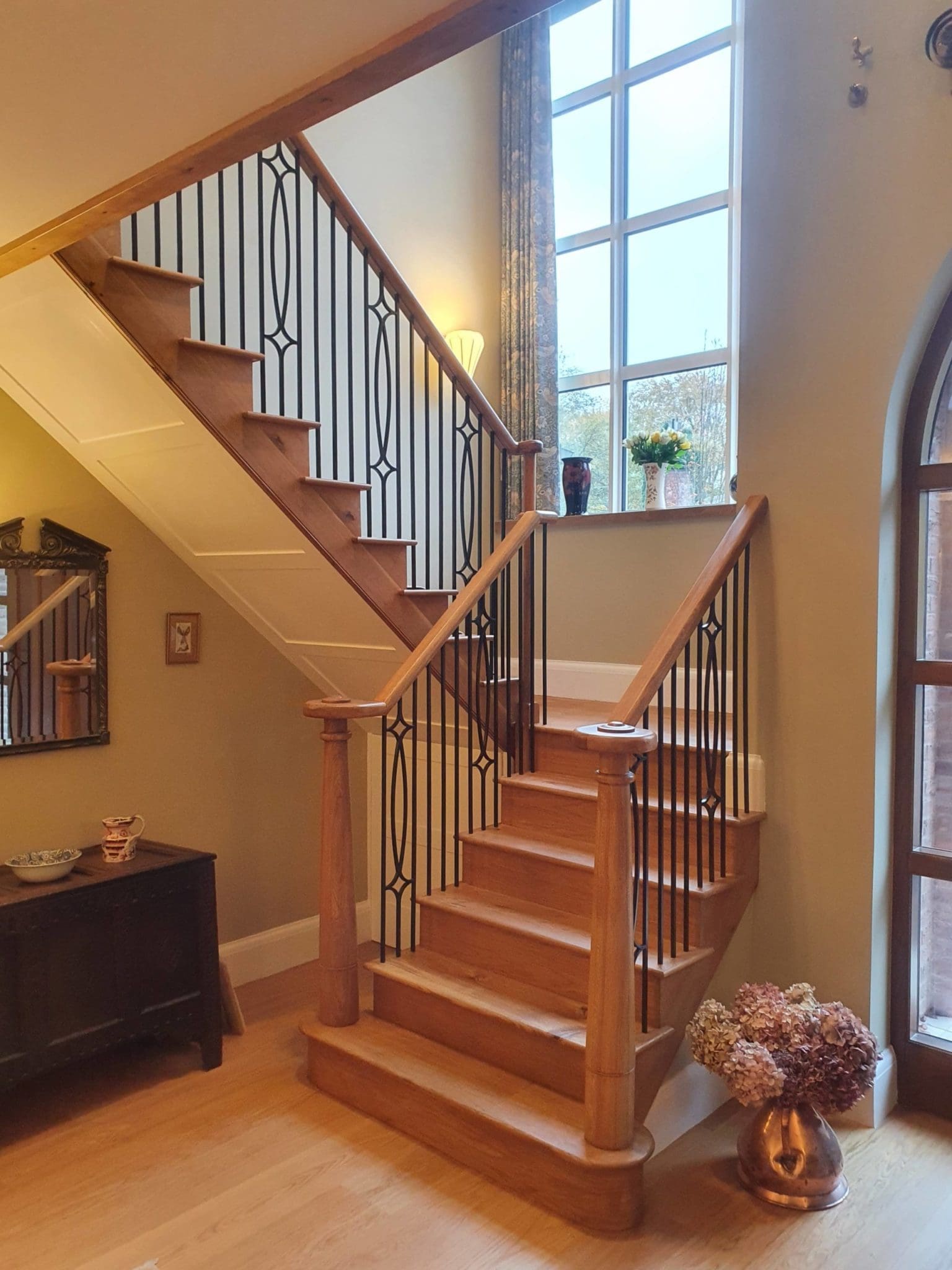 The oversized 9ft entrance door by Illingworth Ingham is a beautiful piece of local craftsmanship and is also a sign of the high quality of materials and workmanship throughout, with a bespoke staircase and beautiful solid oak flooring by Havwoods which was featured as one of their case studies