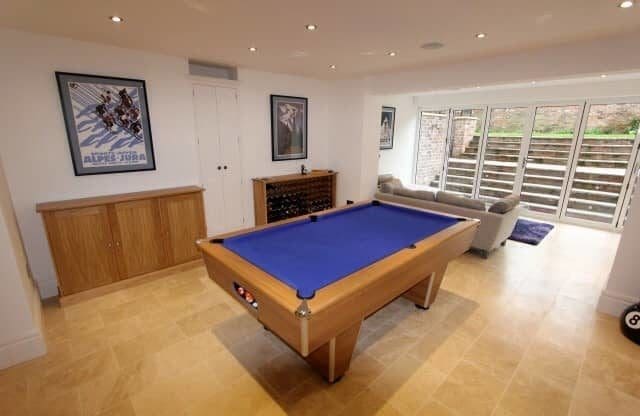 The basement level was lowered by 900mm to provide living accommodation with substantial headroom to match the proportion of the large rooms to the upper floors. The basement provided space for a gym, a games room, a cinema room and laundry room linked to the large family kitchen through a two storey atrium opening out onto the garden.