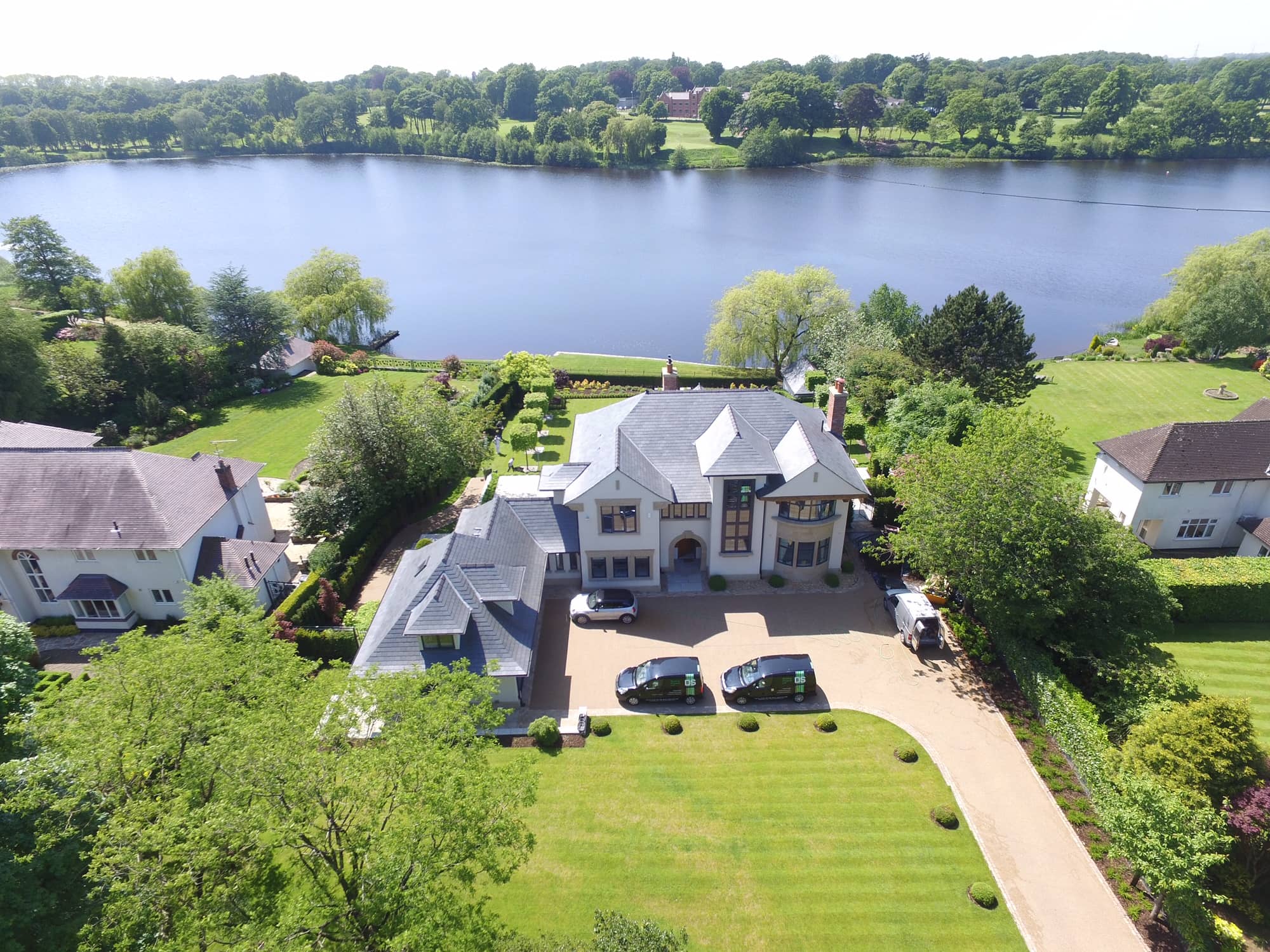 This LABC award-winning new build home is a large ‘Arts and Craft’ style house with sculpted stone details and green oak features. The outer timber, render and stone finish hides a Modern Method of Construction of ICF insulated concrete formwork. This not only reduces onsite construction time, but results in a super insulated home. The property makes the most of framing the stunning views across the formal garden and lake from all the principle rooms.