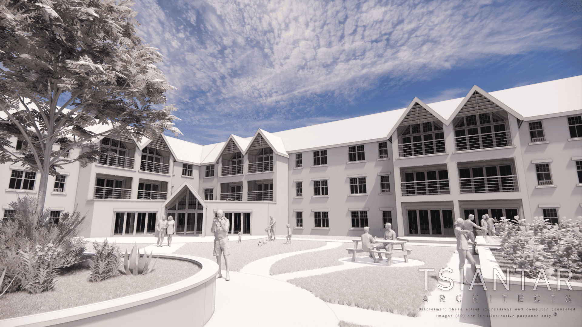 This was an exciting proposal to be involved in, designing within the sites overlooking, and height restrictions. We also suggested activities on site for the occupants, providing the internal spaces suitable for a games area and cinema, alongside proposed landscaping to include external ‘picnic’ seating, paths, and allotments.