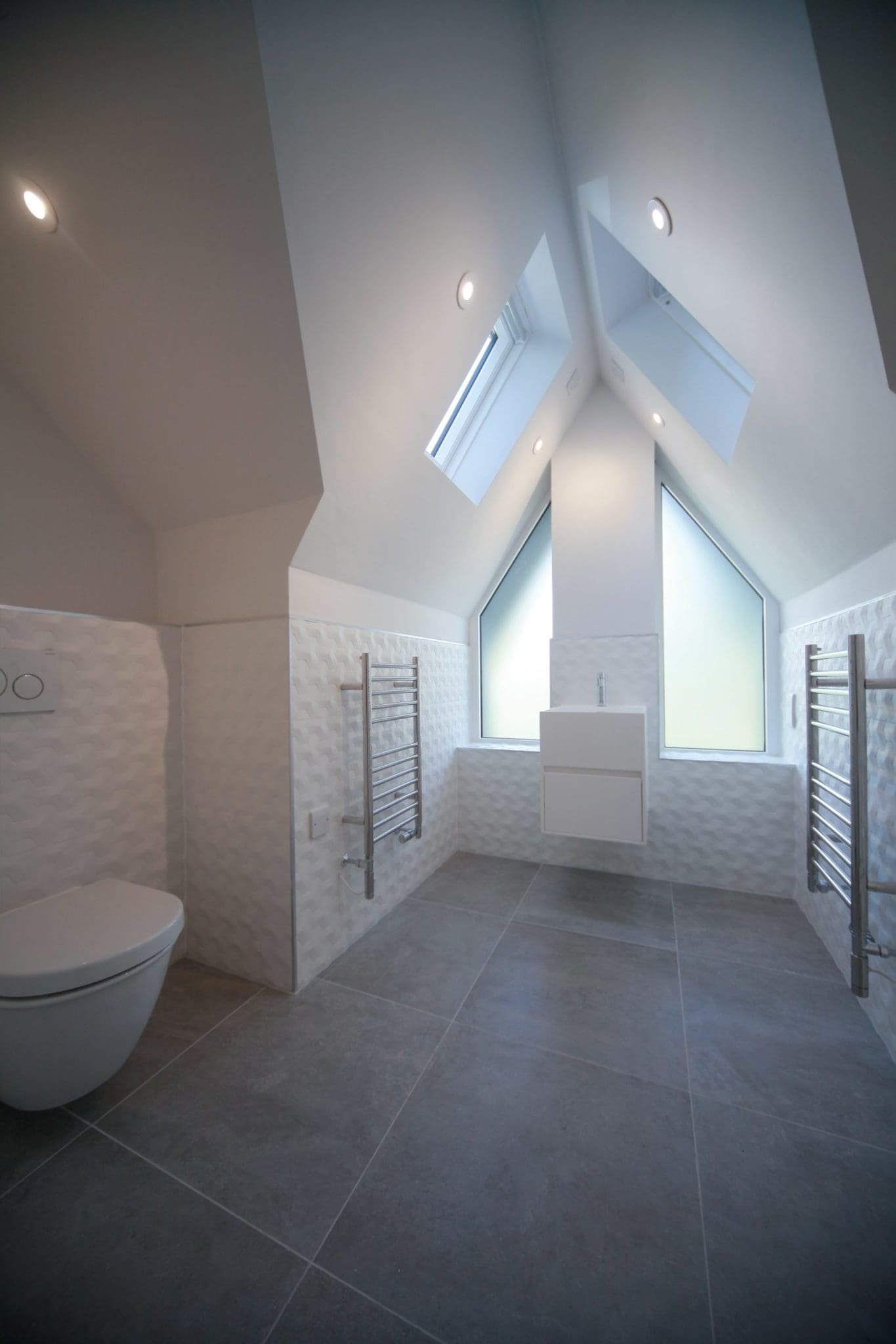 The final scheme layouts produced welcoming and traditional proportions for the reception rooms and first floor bedrooms with dressing and en-suites, contrasting with more modern open kitchen areas with dining and less formal snug areas. Integral garages and large separate utility rooms provide plenty of practical storage. Bed Three over the garage in addition to Beds Four and Five, provide apex ceilings and incredible views, again with dressing and en-suite facilities.