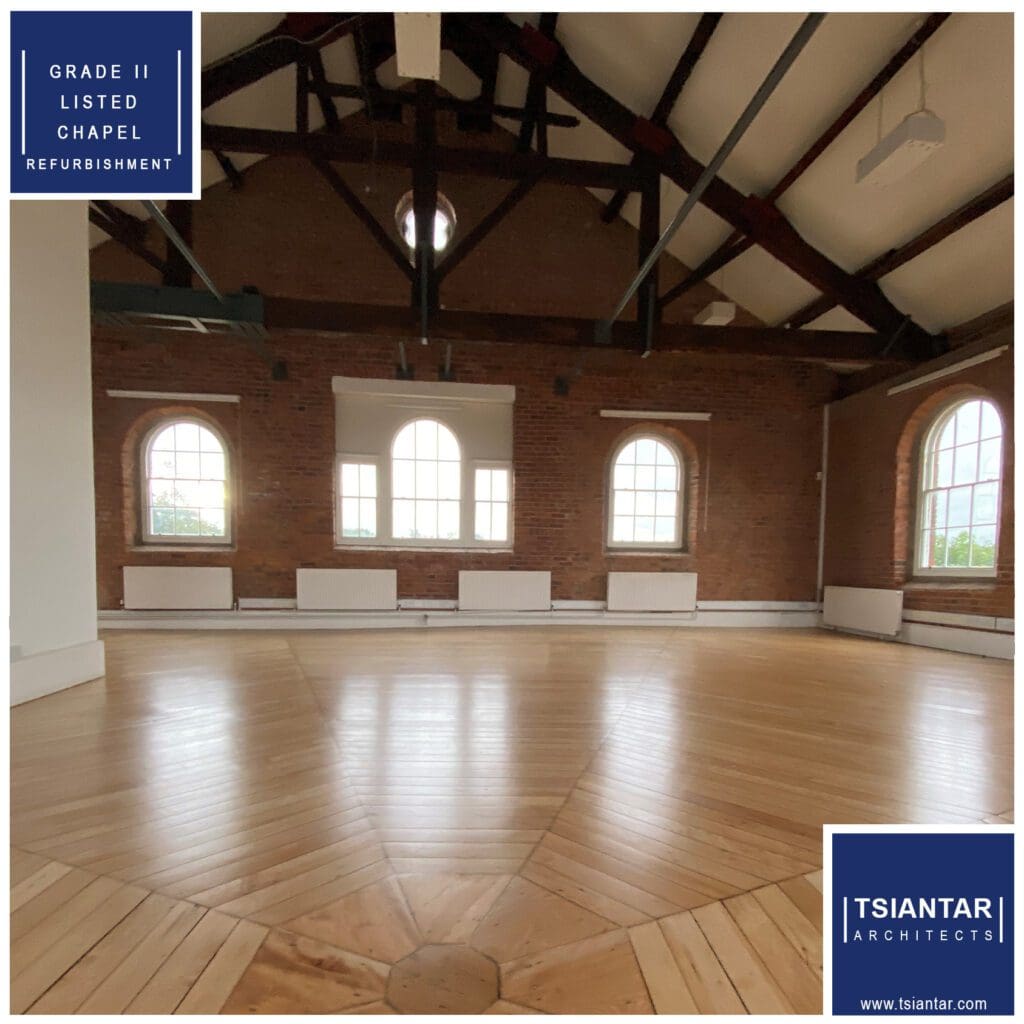 Refurbishment of this stand-alone Grade II Listed Converted Chapel is underway …. starting with the restoration of the first floor open plan office, 160sq.m of beautifully restored solid Maple flooring by ASFlooring, Allan and Ste have done a fabulous job. With a further 180sq.m of ground floor offices, a two-storey entrance foyer, kitchen and boardroom plus gated parking, this stunning space is ready to rent in central Stockport.