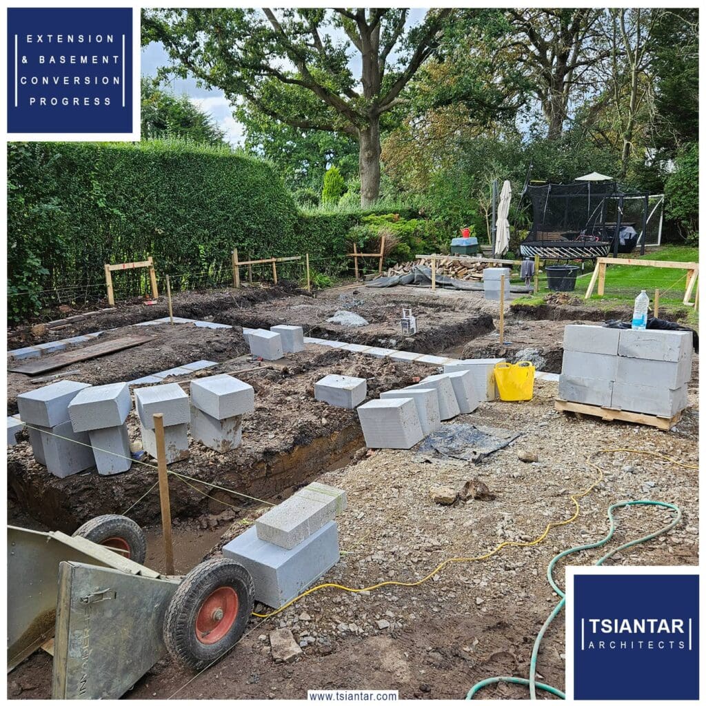 On-site at our rear extension, basement conversion and media suite in Hale. Great to see the foundations started and the basement dig out now in progress.