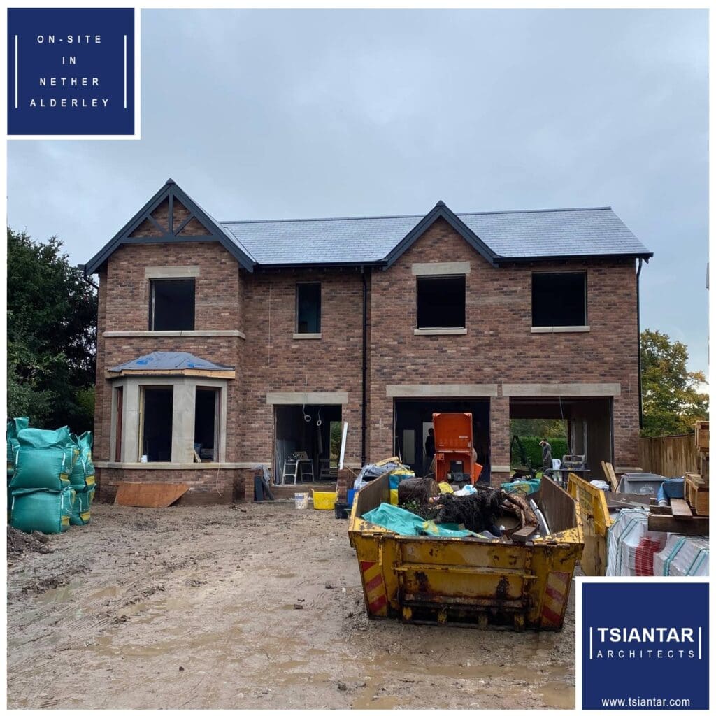 Bit of a wet site visit, but great to see the progress at our new build in Nether Alderley. This four bedroom property is in a fabulous location and is going to be a wonderful family home. Scaffolding down and windows about to be fitted.
