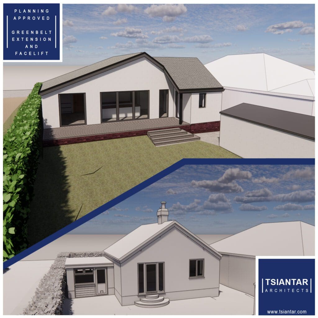 Yes, this is the same home! Our client wanted a cost effective re-model and extension to future proof their recently purchased bungalow after retiring. The house is located in a great location in the greenbelt in Poynton, Cheshire, but wasn’t fit for purpose. We dove into our clients brief to fully understand their requirements and wish list, and after a few iterations to ensure we’d assessed all options plus a few minor challenges through the planning process, we’re ecstatic to inform our client we’re one step closer ….. PLANNING APPROVED, now onto the Building Regulations.