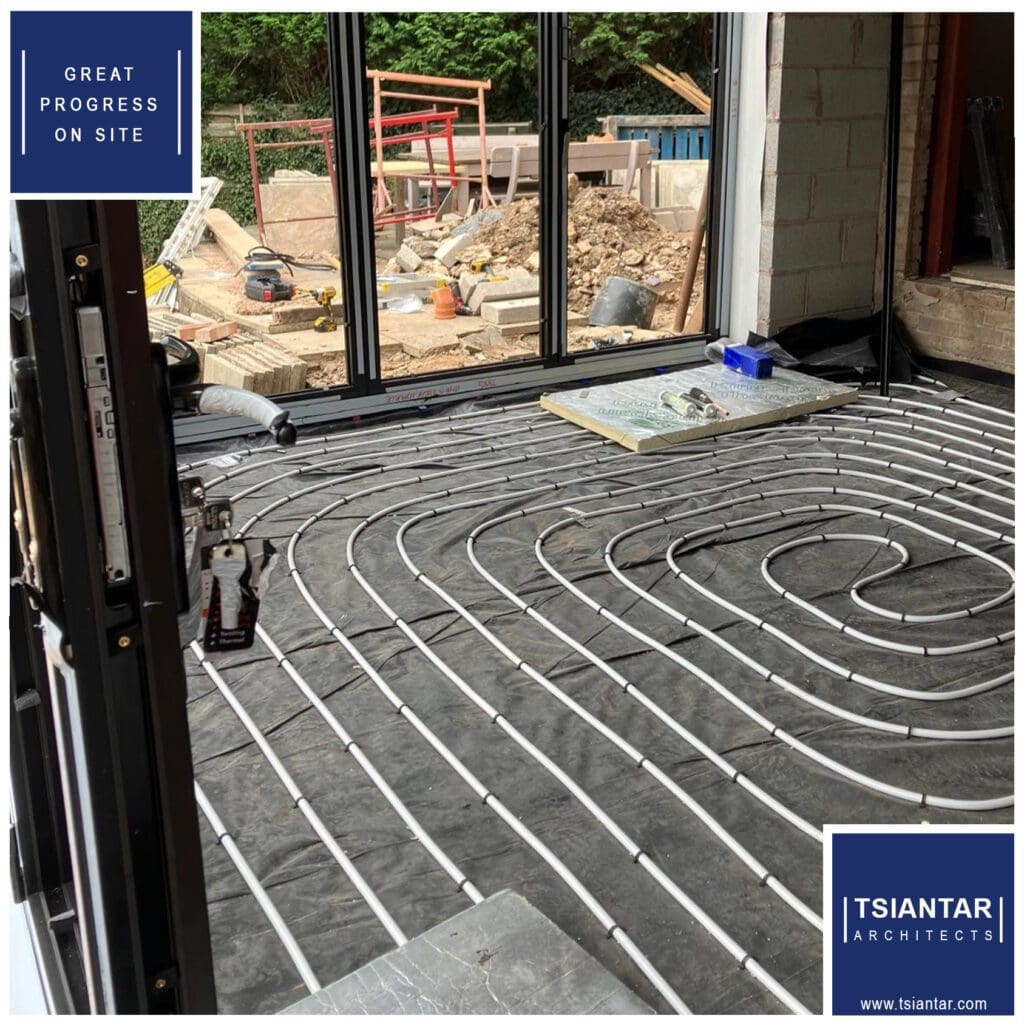 Great progress at our project in Marple, with the bi-folds in and the underfloor heating being installed.