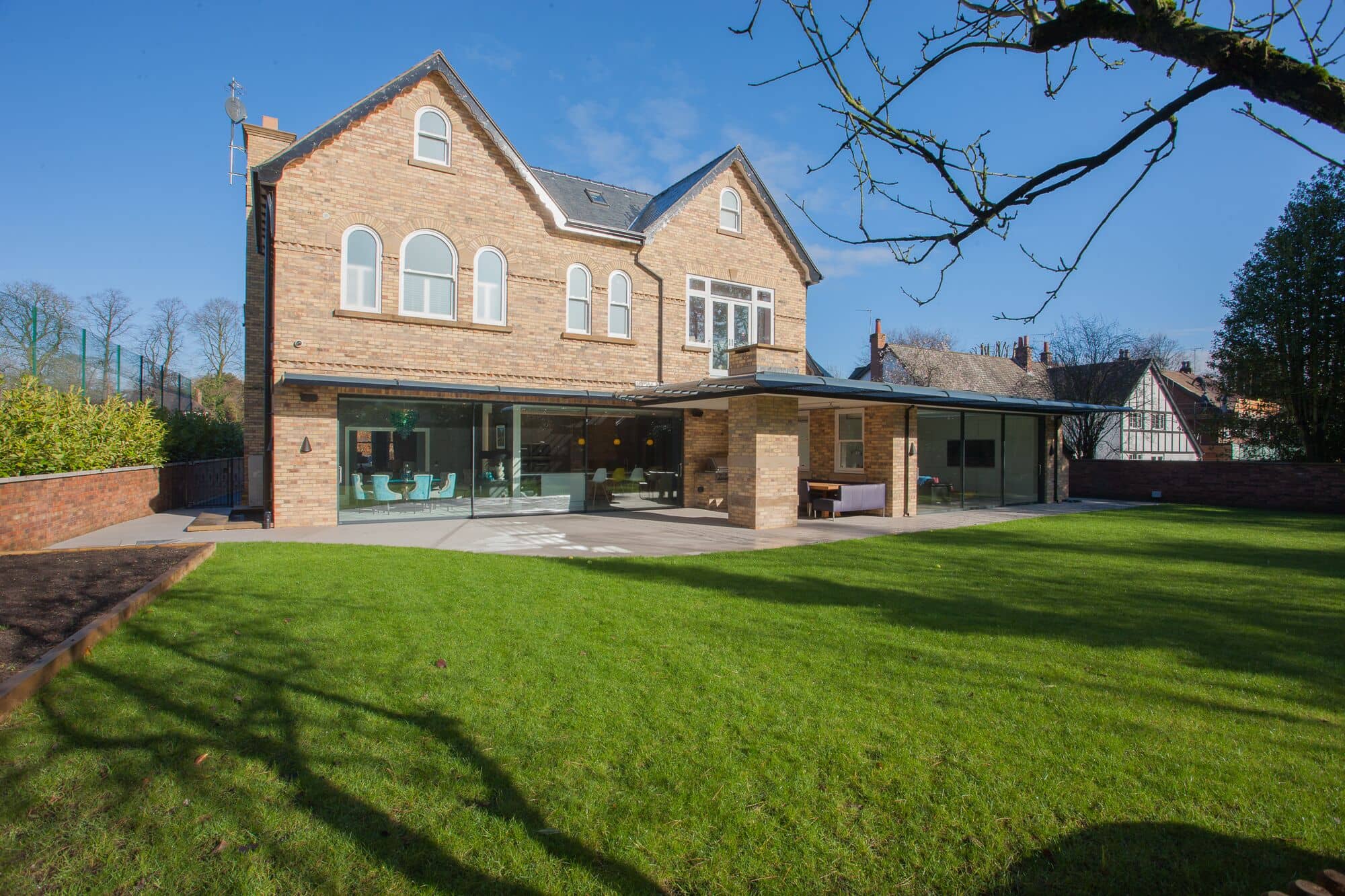 This structure was then clad in traditional “Bowdon” yellow bricks, with bird’s beak brick course details, carved stonework, timber eaves and fascias to create a welcoming family home with elegant proportions.